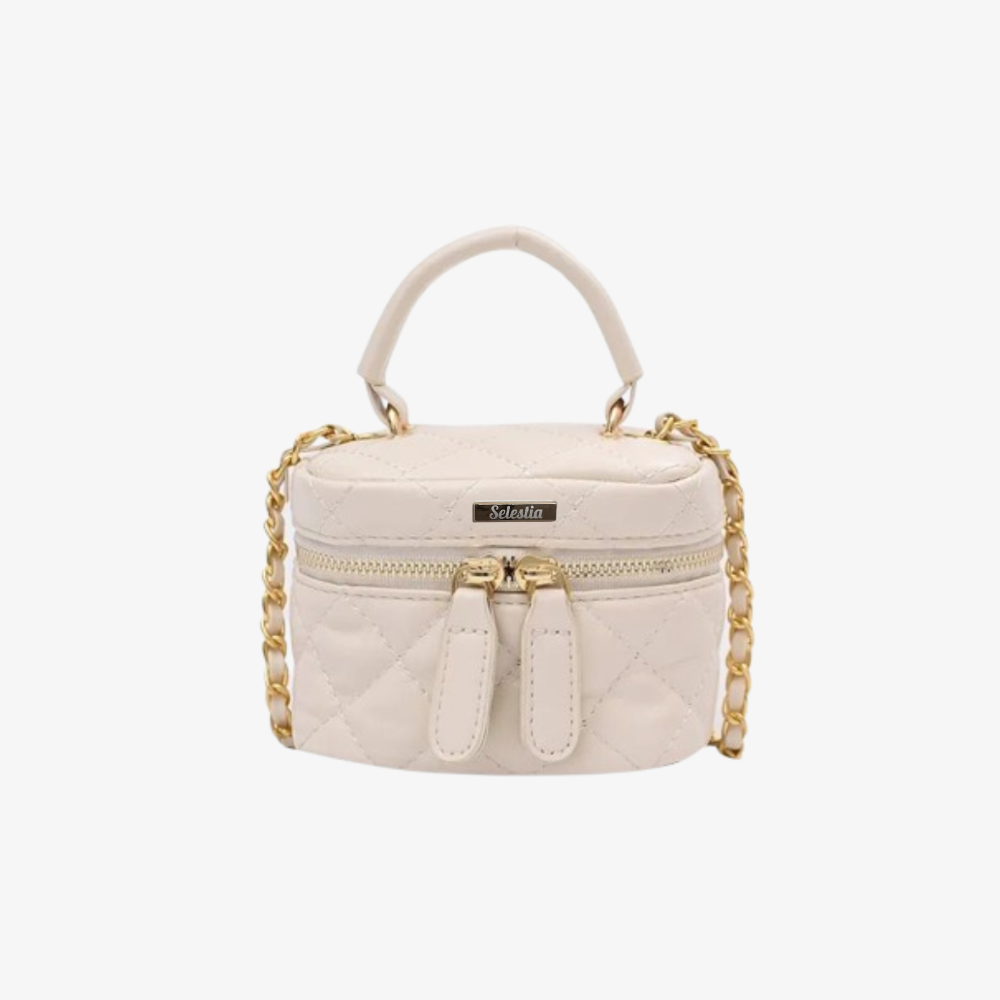 The Nyla bag—a stylish, compact accessory made from high-quality PU leather. Featuring a sleek quilted design and a versatile top handle, this bag is perfect for any occasion. The gold-tone chain strap adds a touch of sophistication, while the secure zip closure keeps your essentials safe. Ideal for both casual and formal settings, the Nyla bag is a must-have in your wardrobe.